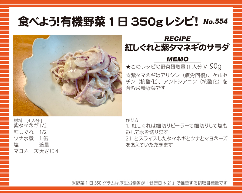 紅しぐれと紫タマネギのサラダ 2026 2/01 紅しぐれと紫タマネギのサラダ 食べよう!有機野菜1日350gレシピ! この記事が気に入ったら フォローしてね! Follow @yuukinokyo Follow Me URLをコピーしました!