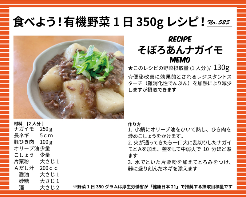 そぼろあんナガイモ 2025 6/01 そぼろあんナガイモ 食べよう!有機野菜1日350gレシピ! この記事が気に入ったら フォローしてね! Follow @yuukinokyo Follow Me URLをコピーしました!