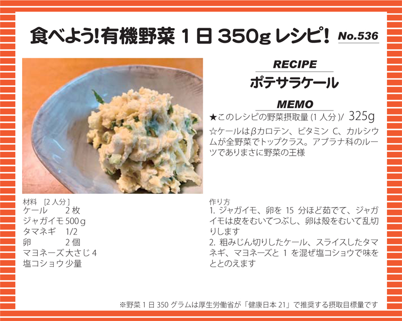 ポテサラケール 2025 8/18 ポテサラケール 食べよう!有機野菜1日350gレシピ! この記事が気に入ったら フォローしてね! Follow @yuukinokyo Follow Me URLをコピーしました!